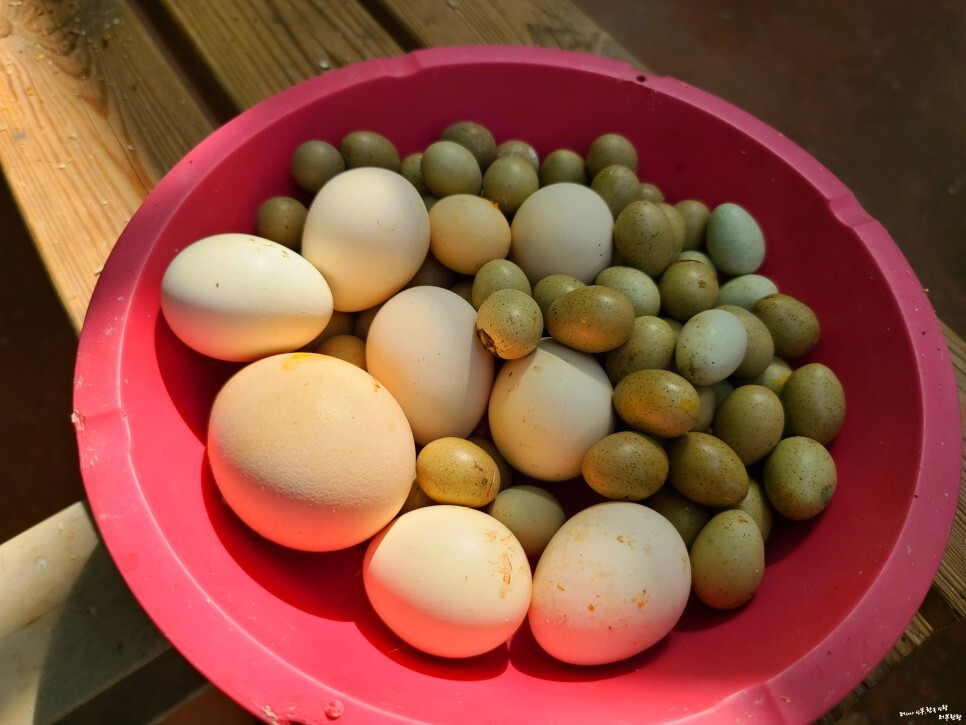 공작알과 메츄리 알이다 여기에선 부화장도 갖추고 있어서