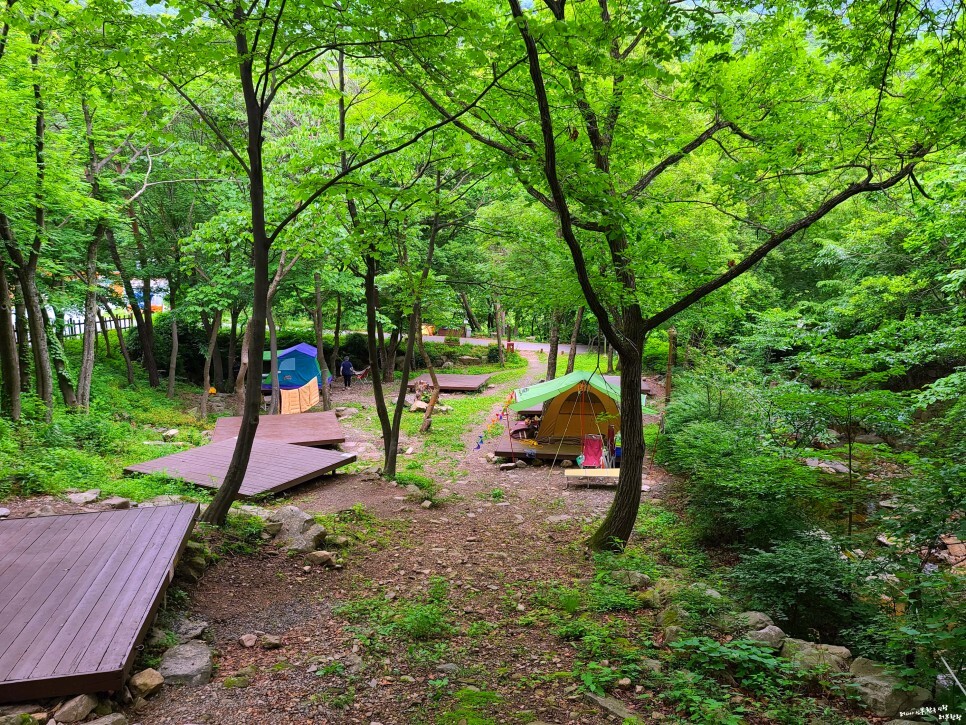 1야영장중에선 자리가 가장괜찮은편이다 계곡쪽이라 하루종일 물소리들을수 있다