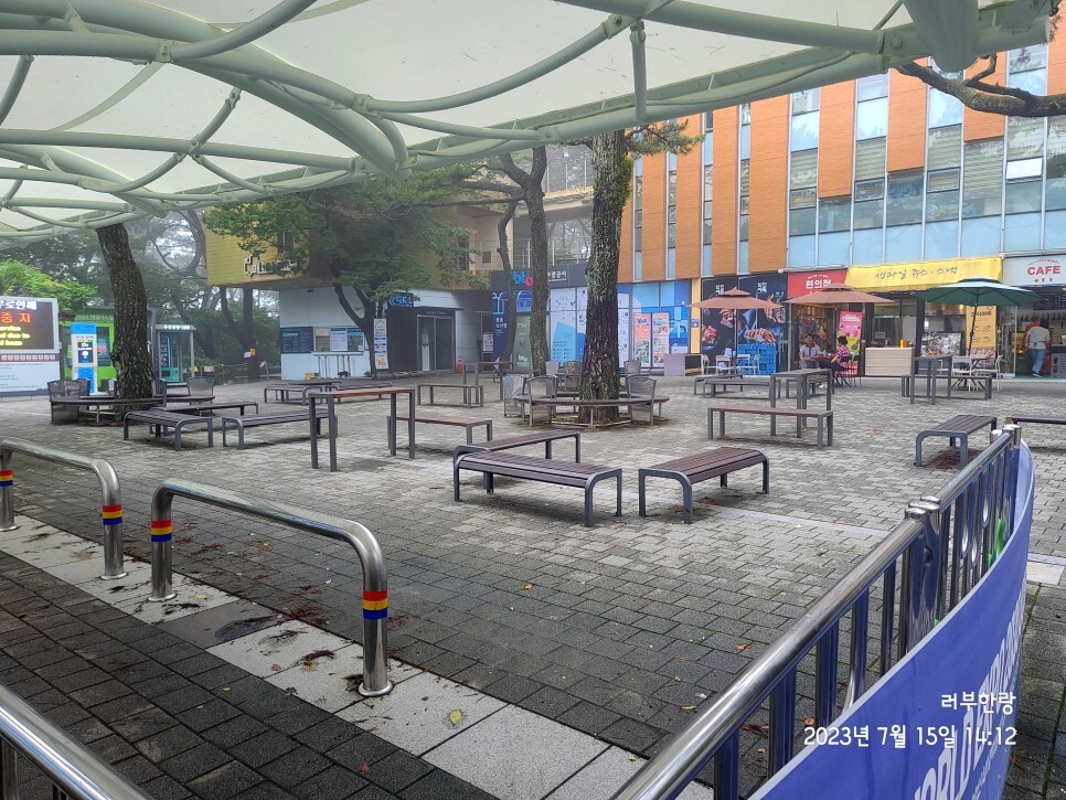 Despite the unfavorable weather, you had no other choice and decided to explore the area, feeling hungry and craving snacks. You ended up buying Korean snacks to satisfy your appetite, but the prices were exorbitant, with one odeng (fish cake) costing more than 1500 won, making it the most expensive odeng you've ever had.