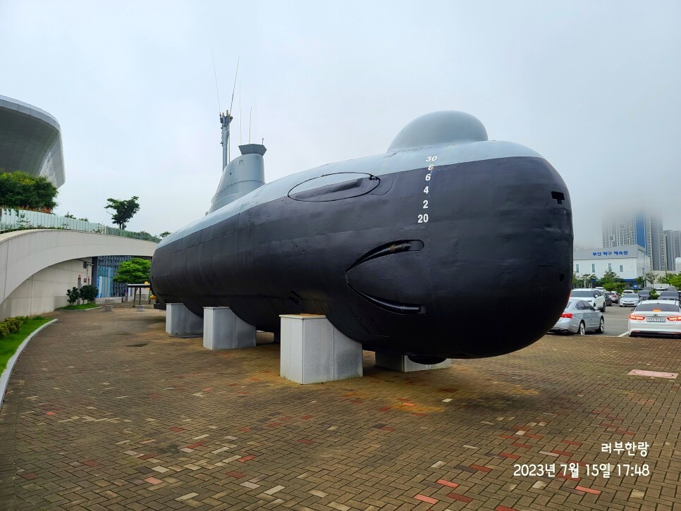 야외에 오른쪽 한편에는 잠수함 모형까지도 전시되어 있다