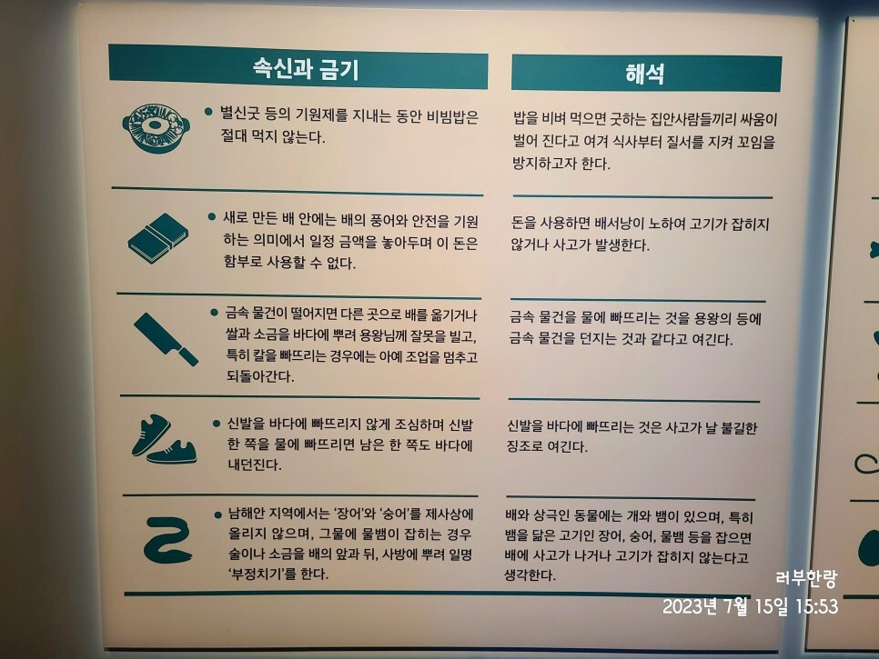 용왕님께 제물을 바치는 이유도 설명되어 있다